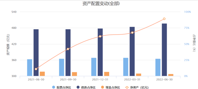 從基金產(chǎn)品類型看,截至2022年上半末年,該公司凈資產(chǎn)514.1億元,其中債券型基金占凈值比例達82.26%,股票占比27.15%,現(xiàn)金占比3.48%。由此可見,權(quán)益類基金規(guī)模較弱。
