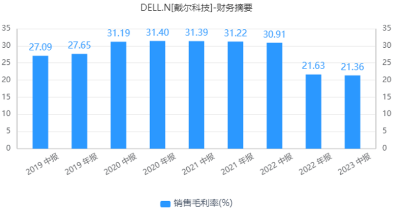 進入到2023財年以來,戴爾基礎設施解決方案集團業(yè)務已經(jīng)連續(xù)兩個季度保持著兩位數(shù)的增長。不過,數(shù)據(jù)中心和云服務具有高投入、高成本的屬性,戴爾科技基礎設施方案業(yè)務毛利率明顯不及其PC業(yè)務。2023財年中報數(shù)據(jù)顯示,戴爾科技毛利率為21.36%,較去年同期(30.91%)下滑接近10個百分點。顯然,毛利率的下滑成為戴爾科技增收不增利的一個主要原因,也是如今戴爾科技亟待應對的挑戰(zhàn)之一。