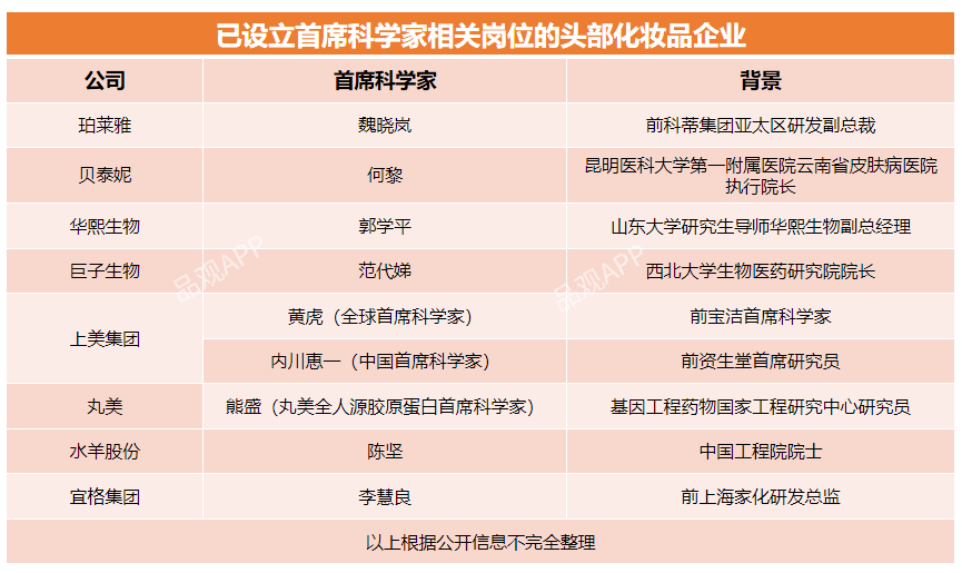 在頭部企業(yè)中,貝泰妮在首席科學(xué)家的配置上,探索出了一條新路子。