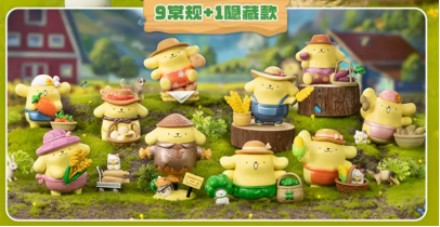 TOP TOY在售的三麗鷗家族布丁狗豐收盲盒,全套9+1,是專為布丁狗定制的主題盲盒,配合玉米、蘿卜、小麥等小道具,打造豐收主題。