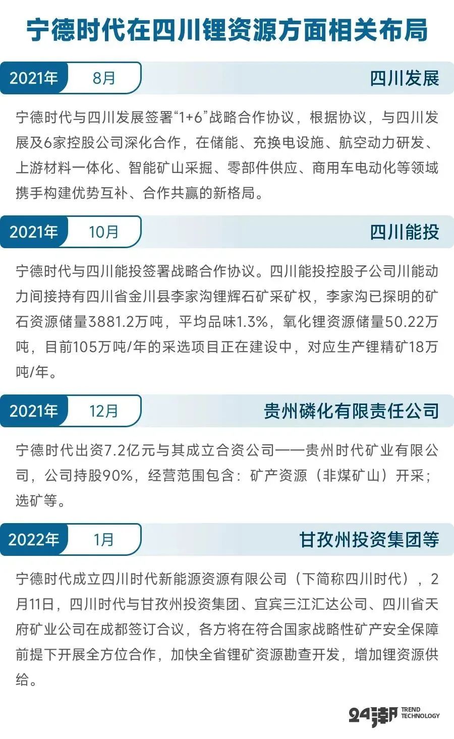 事實(shí)上,從各細(xì)分領(lǐng)域的投資規(guī)模上,我們可以看到上游鋰資源領(lǐng)域無(wú)疑是寧德時(shí)代最為看重的,據(jù)24潮統(tǒng)計(jì),其在鋰資源領(lǐng)域的投資已超百億規(guī)模,根據(jù)東吳證券測(cè)算,寧德時(shí)代在上游鋰資源的系列產(chǎn)業(yè)布局,預(yù)計(jì)23-24年逐漸釋放產(chǎn)能,對(duì)應(yīng)300GWHh+電池需求,遠(yuǎn)期規(guī)劃龐大,有效保證供應(yīng)鏈安全。