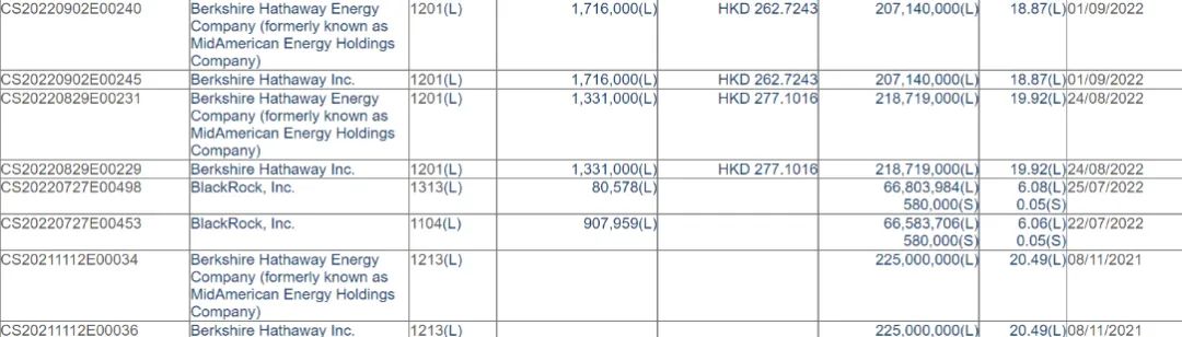 巴菲特減持記錄,圖片來自港交所