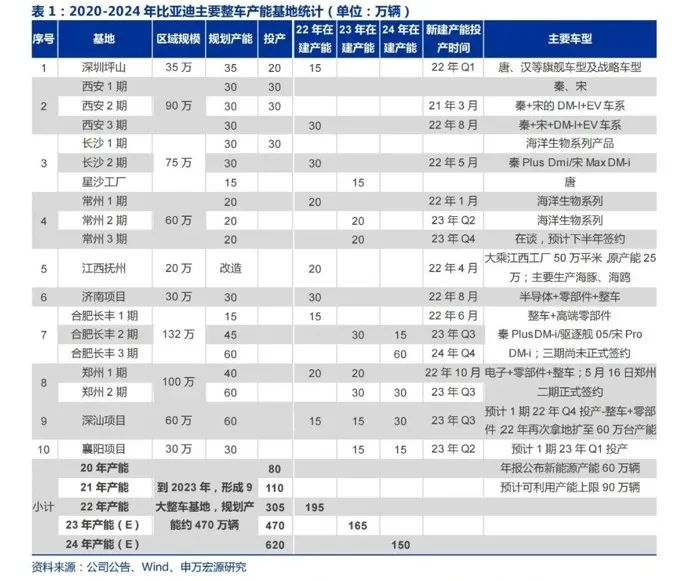比亞迪產(chǎn)能布局,圖片來自申萬宏源的比亞迪研究報告