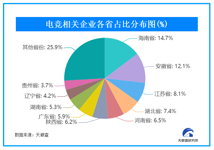 從電競相關(guān)企業(yè)省份分布來看,海南省已擁有9100余家電競相關(guān)企業(yè)位居全國首位,體量約占電競相關(guān)企業(yè)總數(shù)的14.7%。海南省在產(chǎn)業(yè)孵化、電競+旅游項目開發(fā)、賽事落地、人才培養(yǎng)等電競產(chǎn)業(yè)鏈方面發(fā)力效果凸顯。