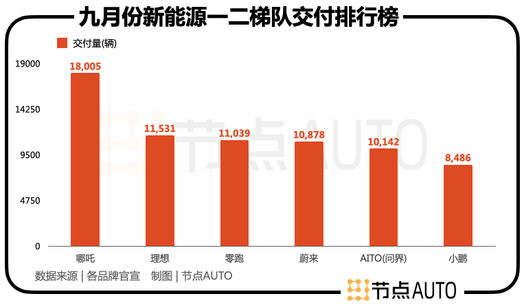 9月,不少新能源汽車(chē)第二梯隊(duì)銷量亮眼。“蔚小理”中,小鵬汽車(chē)墊底,AITO問(wèn)界、零跑、哪吒等第二梯隊(duì)紛紛崛起,超過(guò)小鵬,進(jìn)一步瓦解“蔚小理”三足鼎立的格局。外界有評(píng)價(jià)認(rèn)為,“蔚小理”不復(fù)往昔。