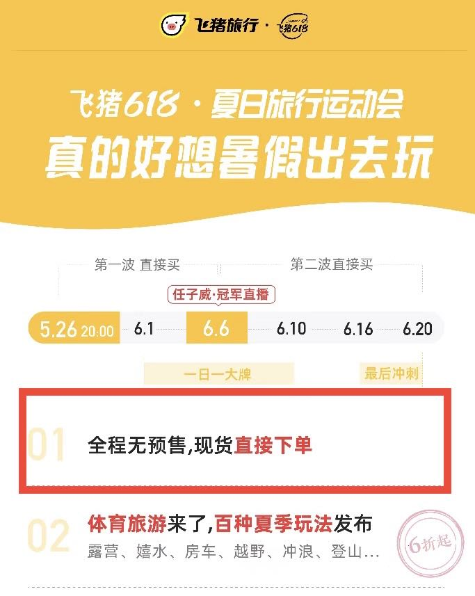事實上,在大促節(jié)點推動旅游商品“現(xiàn)貨開售,直接預(yù)約”,飛豬早有預(yù)謀。