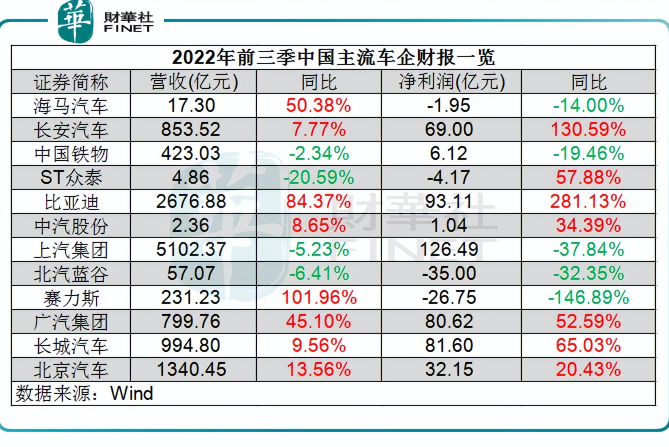 根據統計,在已披露三季報的12間乘用車車企當中,有8間車企營收錄得增長,其余4間車企營收下降。凈利潤方面,有7間車企實現增長,其余5間出現下滑。