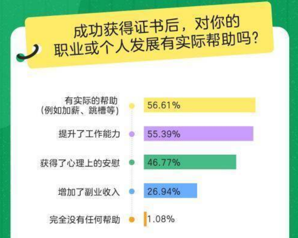 數(shù)據(jù)顯示,有56.61%的職場人表示,考證對(duì)加薪、跳槽等有實(shí)質(zhì)性的幫助。中年人熱衷考證的需求更迫切,他們與20多歲的年輕人相比,有著更大的經(jīng)濟(jì)壓力,子女教育、房貸、父母贍養(yǎng)、醫(yī)療等支出,每一項(xiàng)都在掏空中年人的錢包,而考證成功后預(yù)期帶來的經(jīng)濟(jì)效益,顯然是最直接的“開源”方式之一。