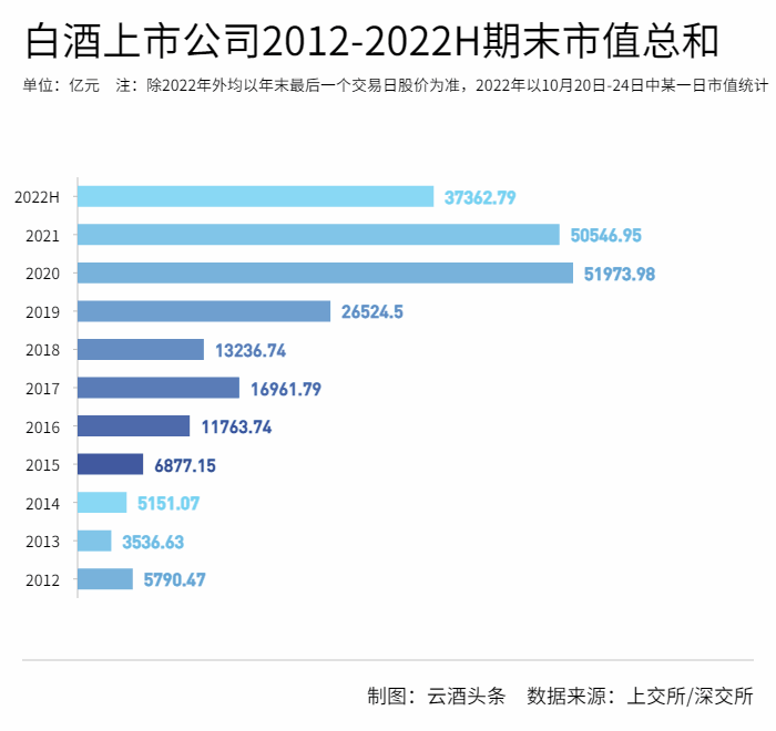 2015年,19家白酒股市值恢復正增長。