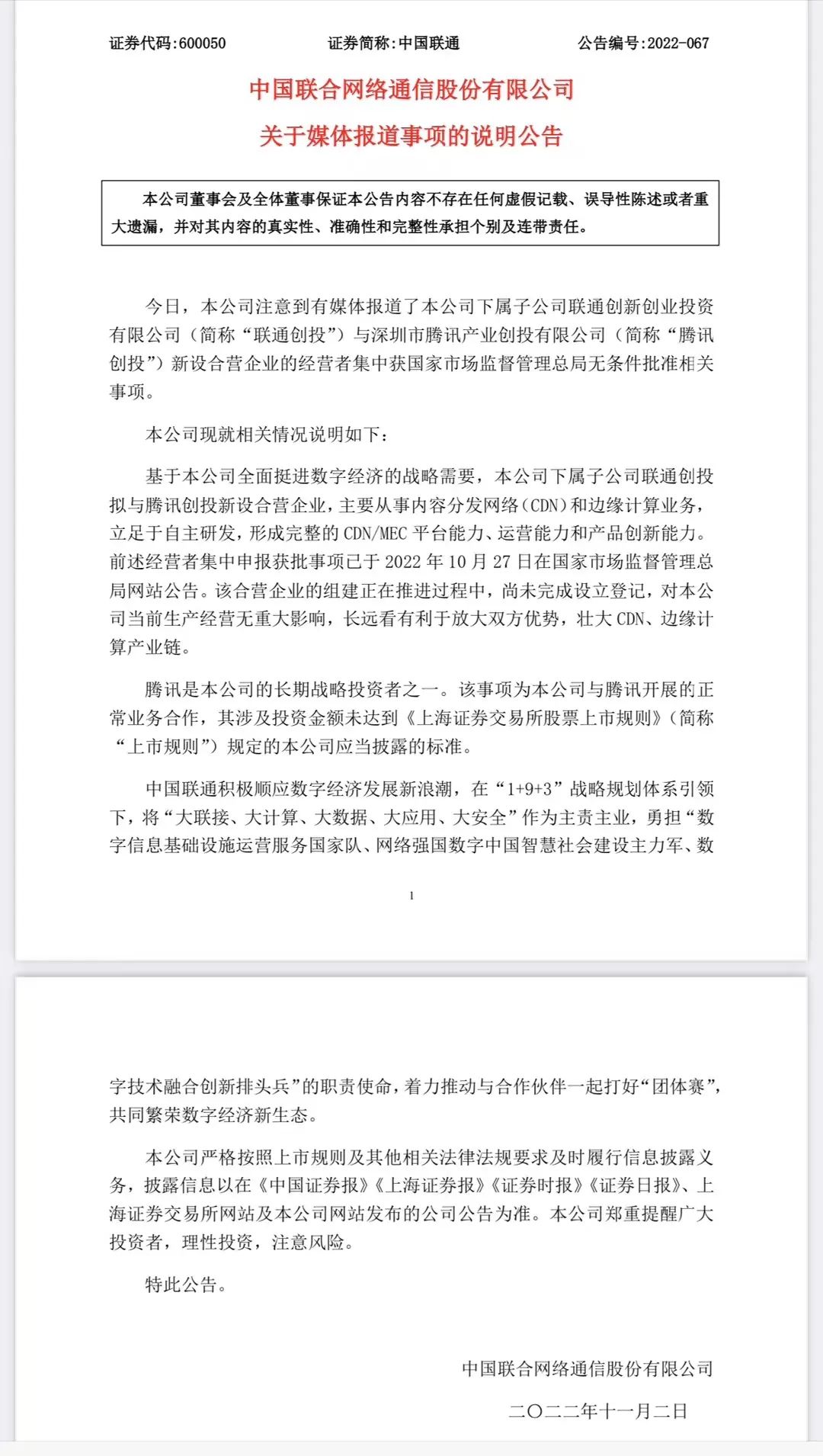 尤其是騰訊和中國聯(lián)通混改獲批的消息,還引發(fā)了資本市場的積極反應(yīng),中國聯(lián)通股價(jià)在11月2日當(dāng)日漲停。為此中國聯(lián)通進(jìn)行了正式回應(yīng),回應(yīng)特別建議投資者要理性,注意風(fēng)險(xiǎn)。