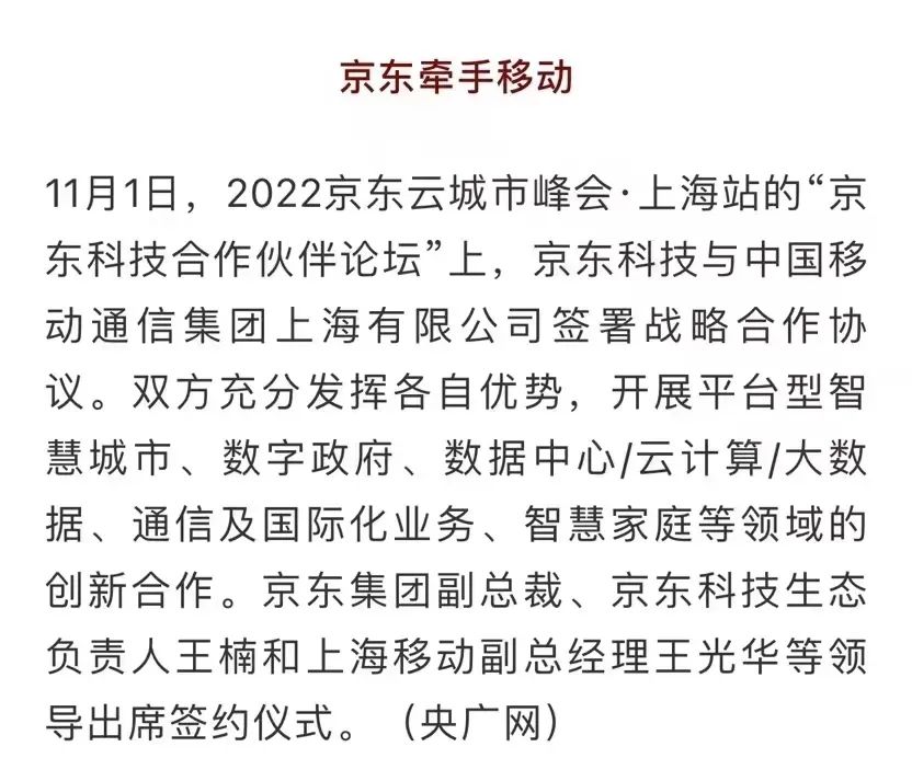 昨天,三則電信運(yùn)營商與互聯(lián)網(wǎng)大廠在某些具體業(yè)務(wù)領(lǐng)域開展戰(zhàn)略合作的消息迅速在各個(gè)群里面?zhèn)鞑?,相同或者類似的?nèi)容的截圖,在較短的時(shí)間內(nèi)幾乎同時(shí)可以在不同類型群里看到。一是阿里與中國電信的合作,二是京東與中國移動的合作,三是騰訊與中國聯(lián)通的合作。真可謂是“不約而同”。