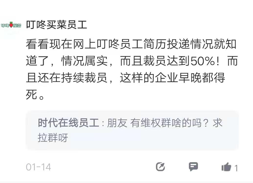 早在年初,就有一位認(rèn)證為叮咚買菜員工的網(wǎng)友在脈脈平臺(tái)上透露,叮咚買菜已經(jīng)開(kāi)啟大裁員,裁員比例為采購(gòu)50%、算法30%、運(yùn)營(yíng)30%、招聘為10%-20%。在離職員工的賠償方面,有被裁員工表示“沒(méi)有n+1,只有n”。