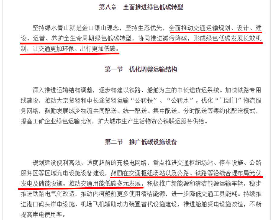 2022年1月18日,國務(wù)院下發(fā)《“十四五”現(xiàn)代綜合交通運輸體系發(fā)展規(guī)劃》,明確指出,鼓勵在交通樞紐場站以及公路、鐵路等沿線合理布局光伏發(fā)電設(shè)施,讓交通更加環(huán)保,出行更加低碳。