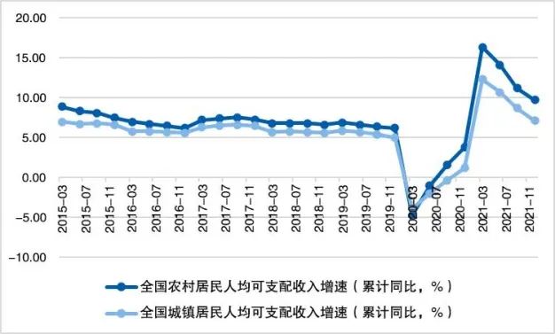 國家統(tǒng)計(jì)局?jǐn)?shù)據(jù)顯示,2021年,我國城鄉(xiāng)居民收入差距不斷縮小,農(nóng)村居民人均可支配收入達(dá)到18931元,同比增長10.5個(gè)百分點(diǎn),增速快于城鎮(zhèn)居民人均可支配收入增速的8.2%。同時(shí),農(nóng)村居民人均消費(fèi)支出達(dá)到15916元,同比增長16.1個(gè)百分點(diǎn),增速也快于城鎮(zhèn)居民人均消費(fèi)支出增速的12.2%。
