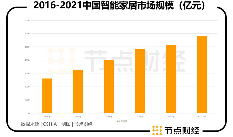 CSHIA數(shù)據(jù)顯示,2016—2021年,我國智能家居市場規(guī)模由2600億元增長至5800億元,年均增長率近20%,遠(yuǎn)遠(yuǎn)超過家居市場整體增速;申萬宏源亦在研報(bào)中指出,長期來看,與美國、歐洲多國家超20%滲透率相比,中國智能家居市場滲透率僅為4.9%,具有較大成長空間。