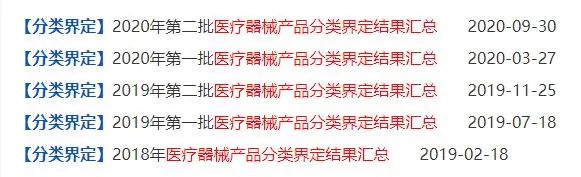 《未來跡Future Beauty》觀察到,自2017年9月4日,國家藥監(jiān)局正式發(fā)布新修訂的《醫(yī)療器械分類目錄》開始,國家藥監(jiān)局每隔一段時間就會對醫(yī)療器械產(chǎn)品的分類界定結(jié)果進行匯總更新。