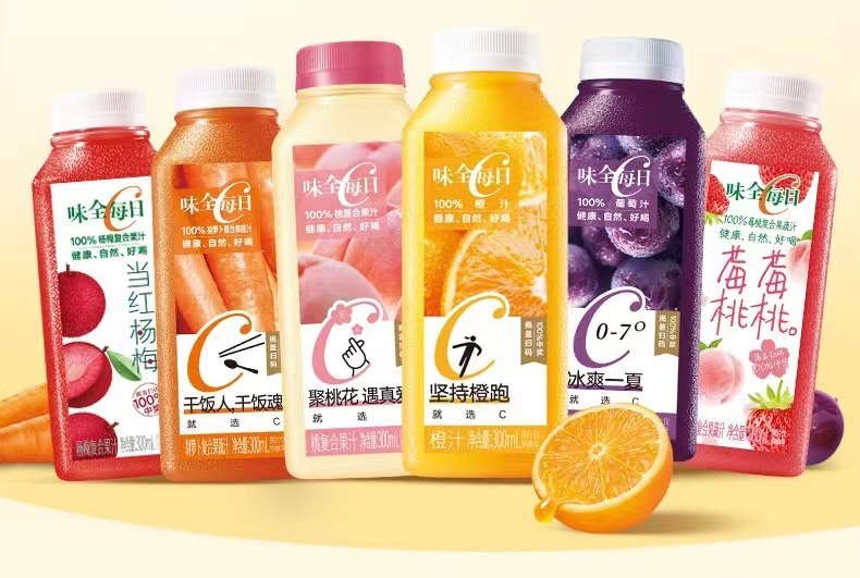 而在FC(濃縮還原果汁)100%純果汁類(lèi)型上,有著味全每日C,主打低溫100%純果汁/果蔬混合汁。這個(gè)自2001年就在上海成立的100%冷藏果汁品牌,在華東地區(qū)市占率曾超過(guò)40%。