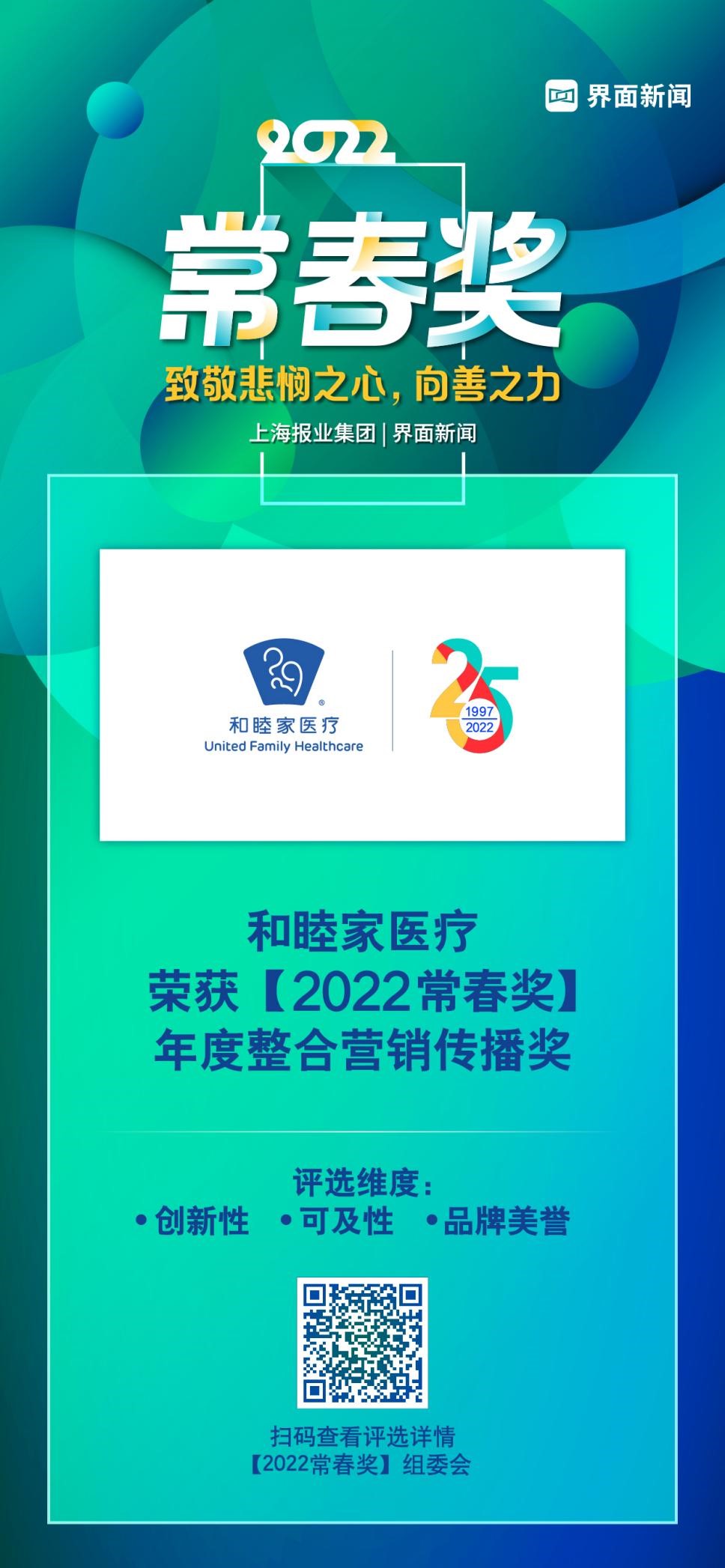 由上海報業(yè)集團 | 界面新聞主辦的2022【常春獎】評選聚焦大健康行業(yè)的升級和變化,依托健康領(lǐng)域?qū)<摇W(xué)者、采編,攜手專業(yè)機構(gòu),綜合社會各界的意見與建議,通過榜單形式,對在中國境內(nèi)開展業(yè)務(wù)經(jīng)營的優(yōu)秀大健康企業(yè)進(jìn)行表彰,致敬悲憫之心、向善之力!