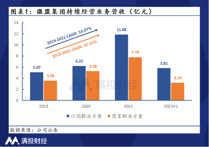從過往數(shù)據(jù)來看,除今年上半年收入有所下滑外,微盟的營收其實(shí)一直保持著增長,由2015年的1.14億元增至2021年的26.86億元,增長近23倍。而今年上半年收入下滑則主要由于停止運(yùn)營部分業(yè)務(wù)和疫情影響導(dǎo)致的廣告業(yè)務(wù)收入下降,剔除終止運(yùn)營業(yè)務(wù)后收入為9億元,較去年同期下降6.23%,有機(jī)構(gòu)預(yù)測公司今年全年收入或?yàn)?1.68億元,較去年同期下降約19%。
