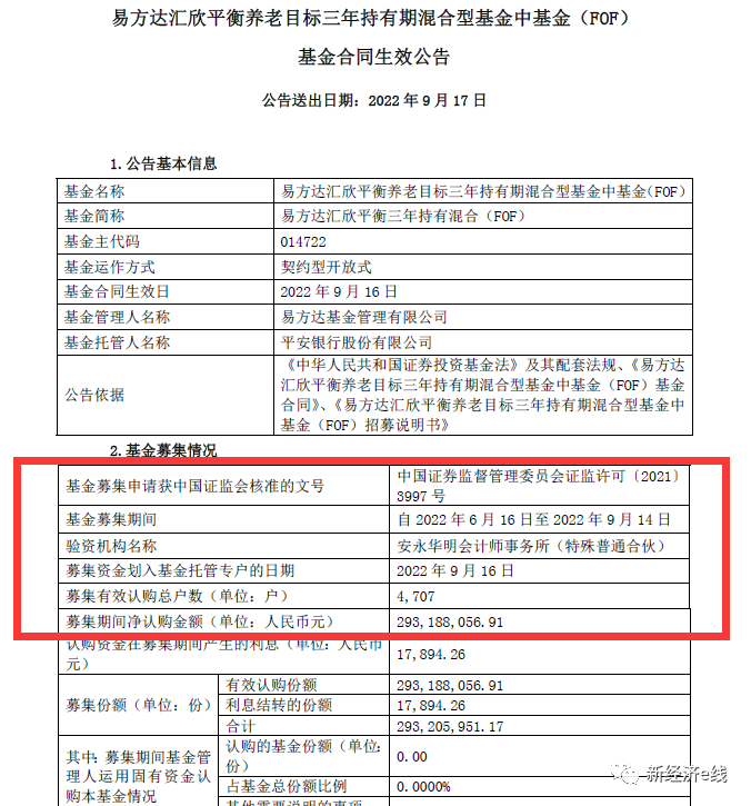如成立時(shí)間最晚的易方達(dá)匯欣平衡養(yǎng)老三年持有A和易方達(dá)匯康穩(wěn)健養(yǎng)老目標(biāo)一年持有A剛剛于今年9月16日和9月6日成立,基金募集規(guī)模分別達(dá)2.93億元和9.18億元。