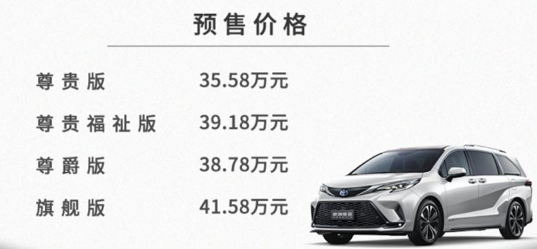 2022年11月18日,一汽豐田全新MPV車(chē)型“格瑞維亞”的售價(jià)終于在無(wú)數(shù)人的殷殷期待中公布:4款車(chē)型,預(yù)售區(qū)間為35.58萬(wàn)-41.58萬(wàn)元,略高于其姊妹車(chē)型廣汽豐田賽那(售價(jià)區(qū)間為30.98-40.58萬(wàn)元)。