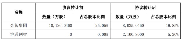通過本次股份協(xié)議轉(zhuǎn)讓,滬通創(chuàng)智將以5.20%的持股比例,成為金智科技的第三大股東。股份轉(zhuǎn)讓后,金智集團持有金智科技股份的比例將由原來的25.05%減少至19.85%,同時,金智集團及其法定一致行動人合計持股比例將由原來的26.85%減少至21.65%。