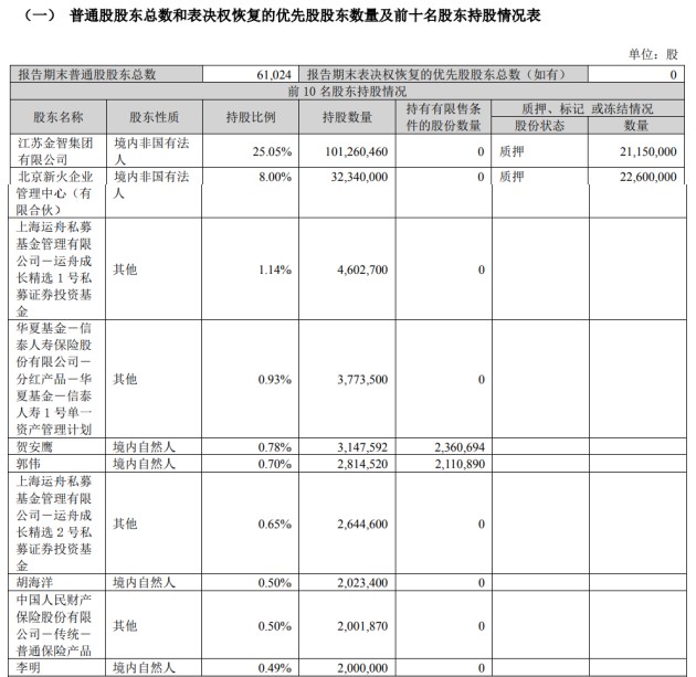 2022年三季報顯示,在前十大股東之中,金智集團當時持有1.01億股,持股比例為25.05%,是第一大股東;北京新火企業(yè)管理中心(有限合伙)持股8%,為第二大股東,其余股東持股比例均比較小。