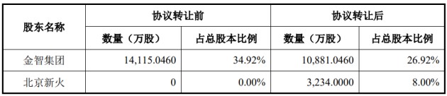 更早之前,控股股東金智集團于2022年4月14日與北京新火企業(yè)管理中心(有限合伙)(以下簡稱“北京新火”)簽署了《股份購買協(xié)議》,金智集團擬將其所持有的公司3234萬股(占總股本的8.00%)協(xié)議轉(zhuǎn)讓給北京新火,轉(zhuǎn)讓價格為8元/股。通過該次轉(zhuǎn)讓,金智集團套現(xiàn)近2.59億元;北京新火新進持股8%,成為金智科技的第二大股東。