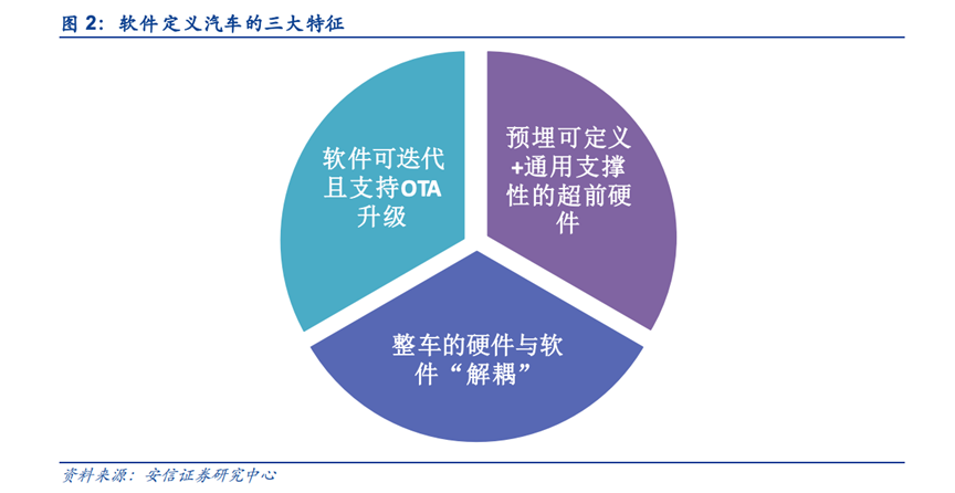 因此,可以將汽車行業(yè)一些新的特征歸納如下:整車的硬件與軟件“解耦”、軟件可迭代且支持OTA升級、預(yù)埋可定義加通用支撐性的超前硬件。