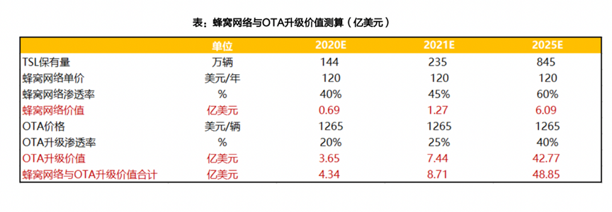 隨著汽車存量的增長,用戶基數(shù)將不斷擴大,OTA升級以較少的成本撬動向上巨大的市場空間,并會帶來估值的大幅提升。