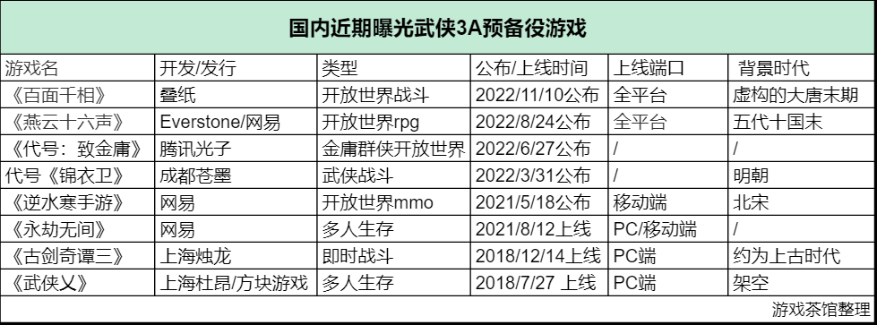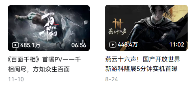 沒錯,這幾排“連珠炮”說的便是從8月到11月,騰訊、網(wǎng)易投資工作室、疊紙相繼曝出產(chǎn)品PV——《代號:金庸》《燕云十六聲》和《百面千相》 。都是“國風(fēng)武俠+動作”的準(zhǔn)3A配置。
