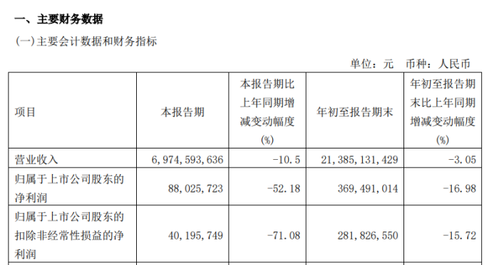 單看第三季度,光明乳業(yè)營(yíng)業(yè)收入約69.75億元,同比下降10.5%;歸屬于上市公司股東的凈利潤(rùn)約為8802.57萬元,同比降幅達(dá)52.18%。