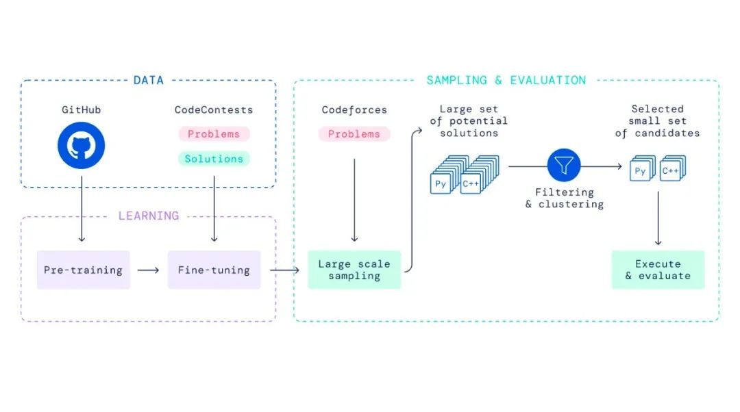 研發(fā)人員為該模型構(gòu)建了CodeContest數(shù)據(jù)集,該數(shù)據(jù)集由約13500個競爭性編程問題的說明性文本、所需輸入輸出對的簡單測試用例以及跨幾種變成語言的問題潛在解決方案組成。