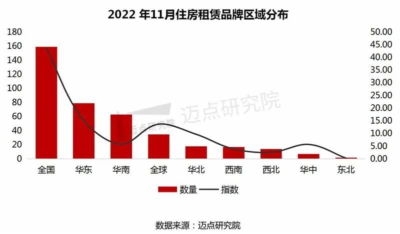 2)區(qū)域品牌表現(xiàn):全球品牌表現(xiàn)較為出色,雅遇長租公寓排名快速攀升