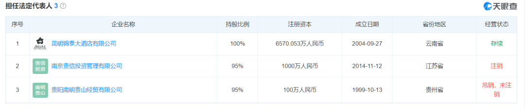 天眼查的數(shù)據(jù)顯示,李貴山擔(dān)任法人的企業(yè)有3家,擔(dān)任高管的有6家,擔(dān)任股東的有14家。