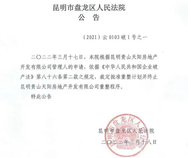 2021年4月,法院裁定受理貴山天陽公司的破產(chǎn)重整申請;2022年2月,第二次債權(quán)人會議通過了重整計劃(草案);3月,貴山天陽公司的重整計劃被批準(zhǔn)。