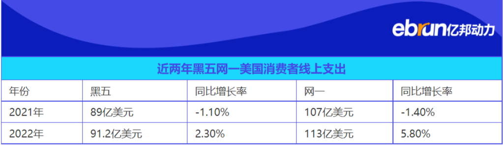對(duì)照2021年的情況——美國消費(fèi)者黑五線上銷售額同比下降1.1%至89億美元、網(wǎng)一線上銷售額同比下降1.4%至107億美元,今年的黑五網(wǎng)一購物旺季顯然并沒有想象中的“冷”,即便面臨著經(jīng)濟(jì)下行、通脹及利率上漲等多重不利因素。