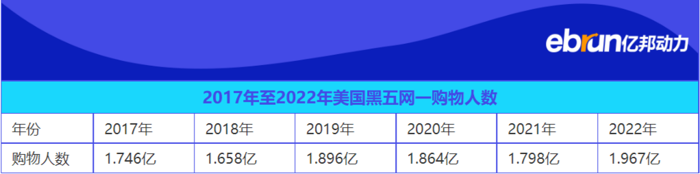 另外,據(jù)美國最大零售組織NRF統(tǒng)計(jì),今年黑五網(wǎng)一購物人數(shù)創(chuàng)下歷史新高——1.967億人,在經(jīng)歷了2020及2021年的連續(xù)下滑后,今年開始回升,并高于疫情前的2019年。顯然,在線上線下零售空前的折扣力度下,黑五網(wǎng)一正在贏回消費(fèi)者。