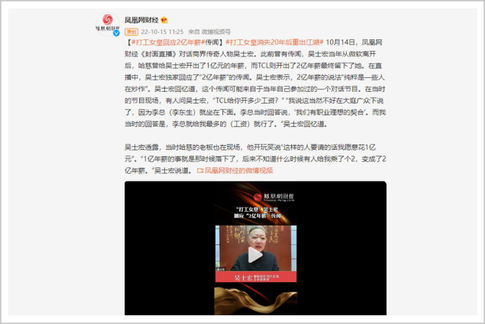 吳士宏最新回應(yīng)“2億年薪”傳聞:一些人的炒作