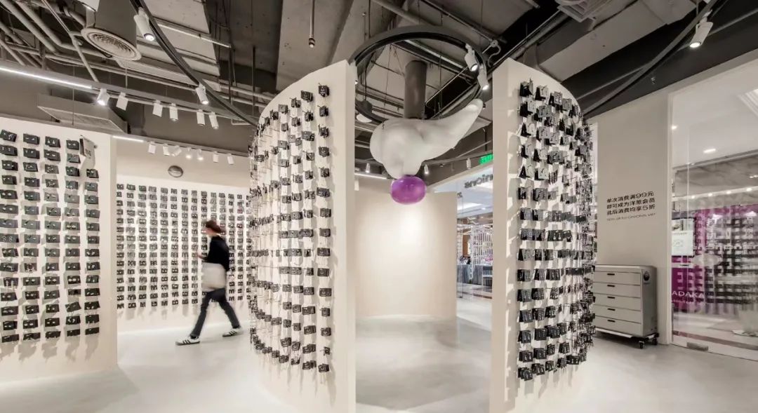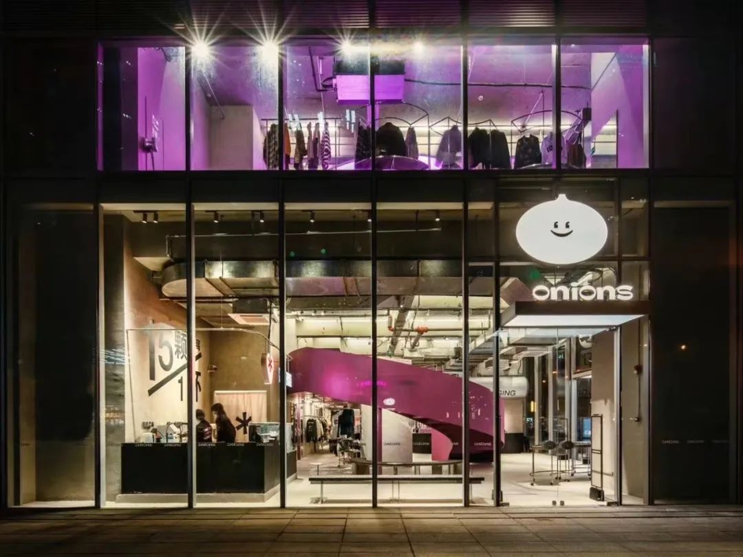太古里旗艦店主要分為兩層,面積接近1000㎡,紫色為主色調(diào)。一樓主要以平價飾品為主,如耳環(huán)、項鏈、發(fā)箍、發(fā)夾等;二樓則是高端的“黑金”系列,并且增加了服飾和潮玩品類,包括小眾女裝線的ONIONSGIRL和無性別線的TOO1S,以及潮玩產(chǎn)品線ONIONSTOYS。太古里旗艦店亦擺放了多個打卡裝置,開業(yè)之際,一層擺放了潮玩藝術(shù)手辦,二層陳列了1:100的巨大螺絲釘裝置。在旗艦店洋蔥倉庫首次配備了飲品區(qū)“洋莓”。