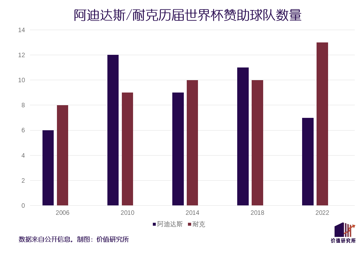 作過國際足聯(lián)官方合作伙伴的阿迪達斯日薄西山,耐克的業(yè)績也無法和巔峰期相提并論。