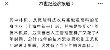 在一篇何中林的采訪文章中,上海中興新甚至被視作是融通高科的前身。