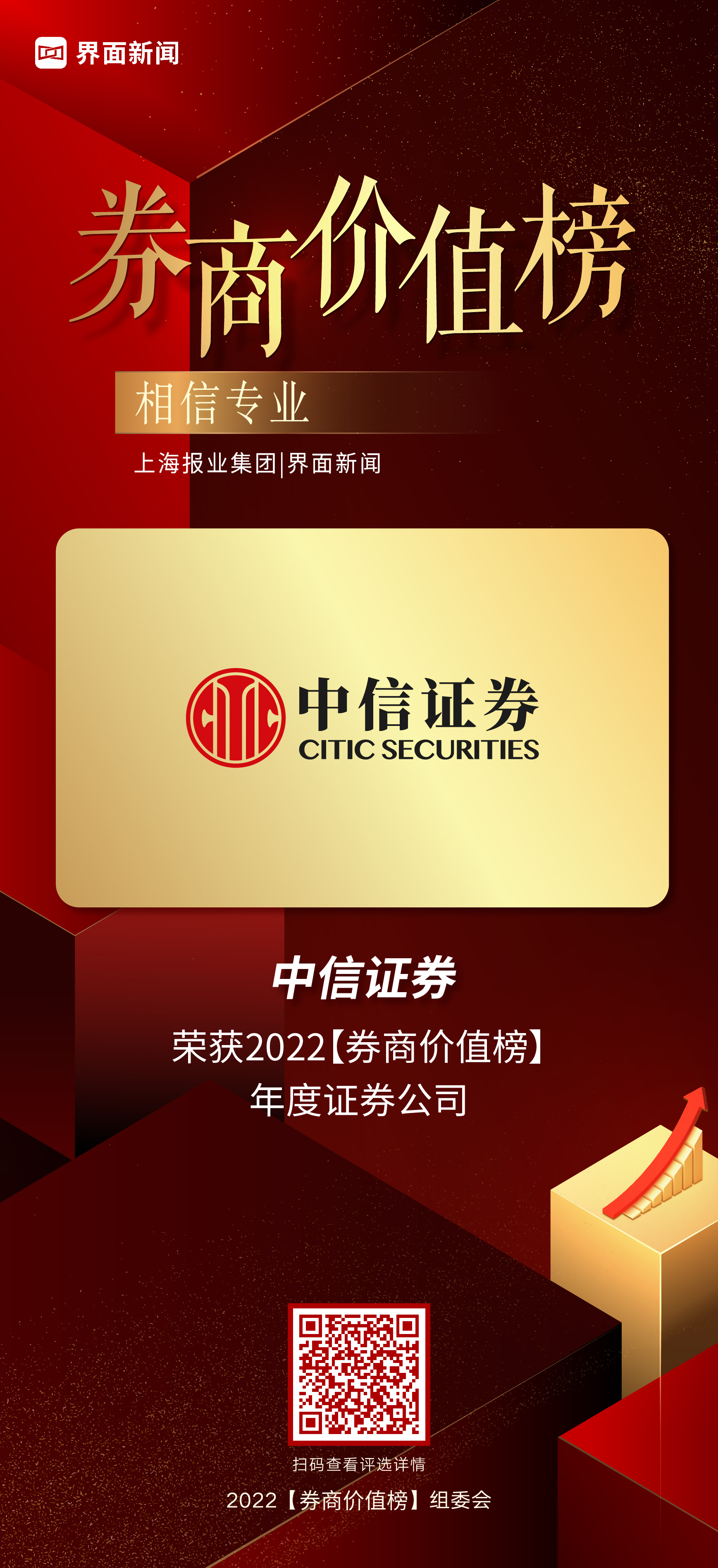 中信證券憑借其綜合實(shí)力和品牌優(yōu)勢(shì),榮膺【2022券商價(jià)值榜】年度證券公司。