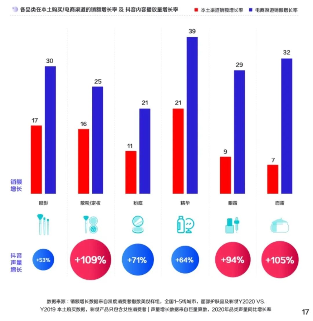 但從市場端數(shù)據(jù)來看,自2020年,品牌專卷精華這一現(xiàn)象已有所改變。據(jù)《2021巨量引擎美妝行業(yè)白皮書》,就抖音內容播放量增長率而言,2020年,面霜的抖音聲量同比增長105%,高于精華的64%。此外,從銷售額增長率來看,這一年,面霜在電商渠道的增長率超過了眼霜等品類,為護膚品類中的增長亞軍。