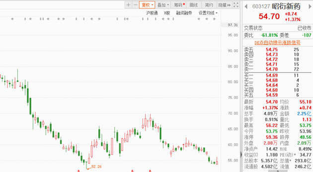 12月22日,昭衍新藥(603127.SH)每股收于54.70元,漲1.37%,總市值293億元。