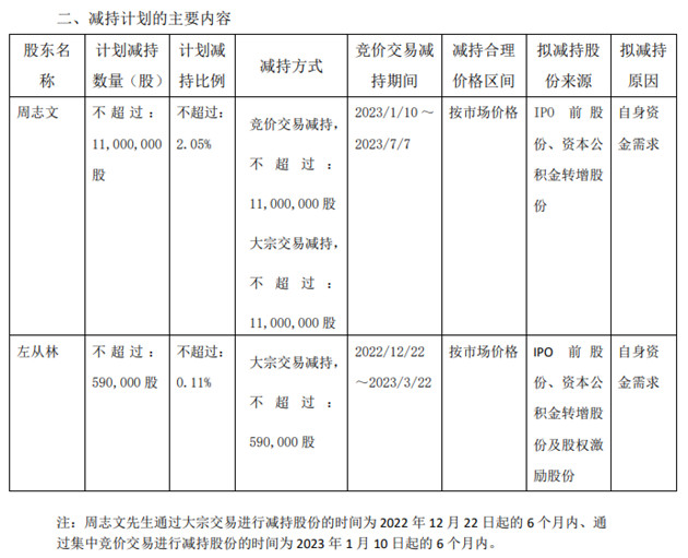 2022年6月至11月間,左從林減持402.90萬股,套現(xiàn)2.45億元。