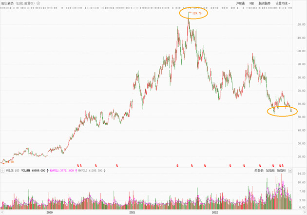 從2021年8月股價最高點到2022年12月22日收盤,昭衍新藥股價出現(xiàn)了波動下跌趨勢,從129.76元/股(前復(fù)權(quán))跌到54.70元/股,每股跌去75.06元,跌幅57.85%。即便股價在下跌過程中,上述幾位董事及其一致行動人還是實施了大規(guī)模減持套現(xiàn)。