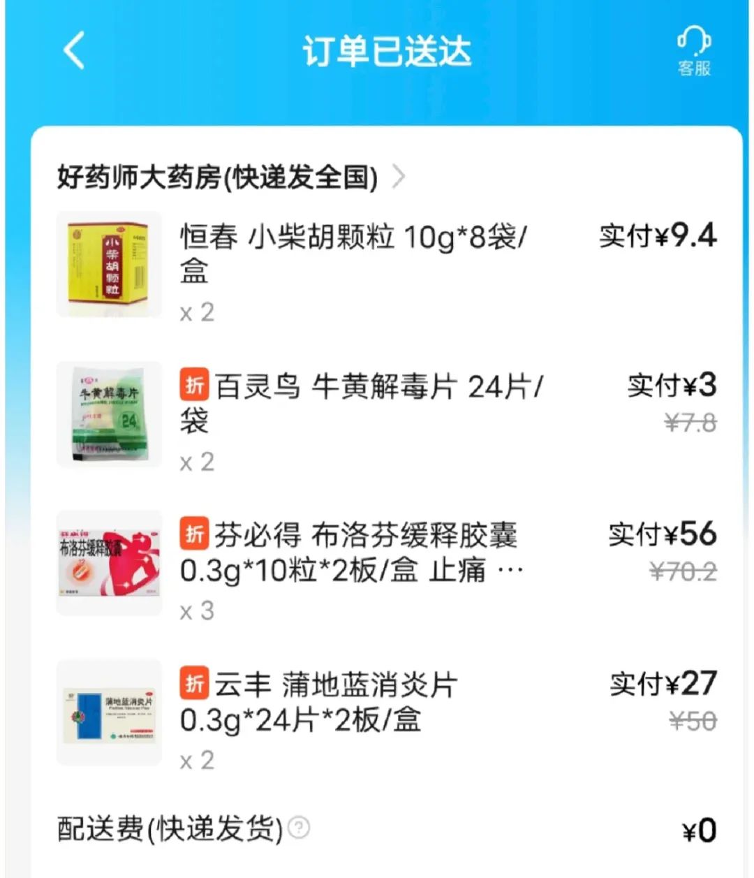 不過由于騎手緊缺,遲遲沒人接單,待收到藥時,已經快凌晨一點。