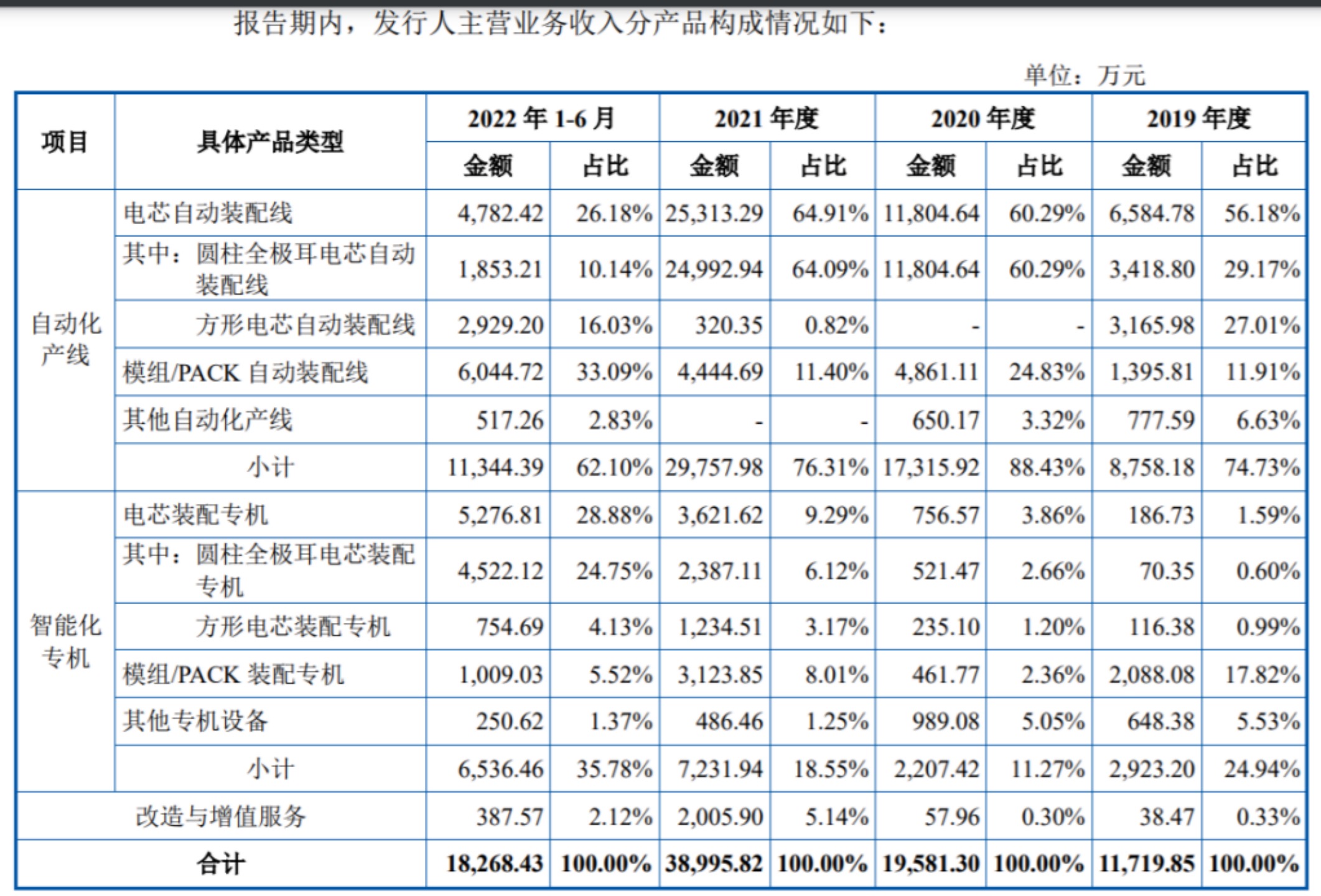 從主營(yíng)業(yè)務(wù)上看,逸飛激光主要擁有自動(dòng)化產(chǎn)線和智能化專機(jī)等兩大業(yè)務(wù),其中自動(dòng)化產(chǎn)線產(chǎn)生的銷售收入報(bào)告期內(nèi)分別為8758.18萬元、1.73億元、2.98億元、1.13億元元,分別占當(dāng)期主營(yíng)業(yè)務(wù)收入的74.73%、88.43%、76.31%、62.1%,已成為公司第一大業(yè)務(wù)。