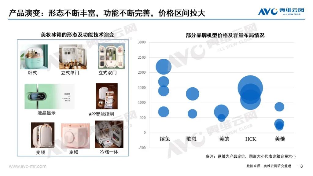 從產(chǎn)品價格區(qū)間來看,美妝冰箱從200元-2000元以上均有產(chǎn)品布局。